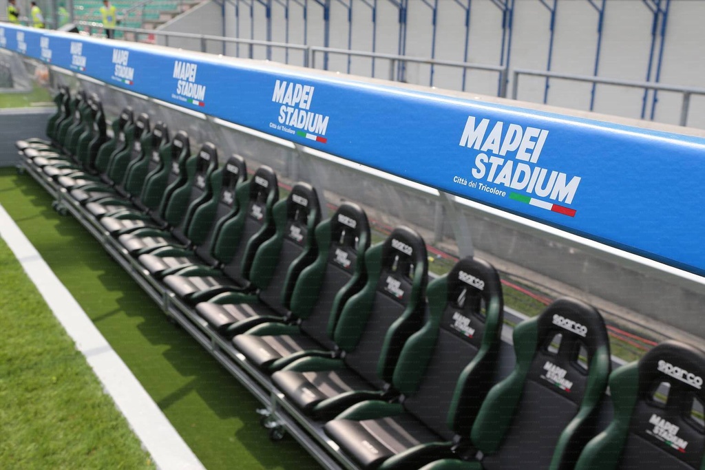 Team shelter model "Elite" with seats positioned inside the pit under football field level.
