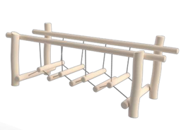 The balancing bridge consists of a wooden structure and 7 different round pieces of wood for balancing, which are placed at different heights. The round timbers are connected to the wooden structure by stainless steel chains. The construction of the balancing bridge is made of robinia wood with a diameter of 180-220 mm.